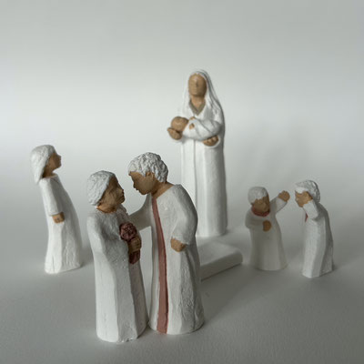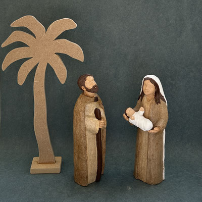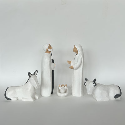 En 2023, j'ai sculpté une crèche de même style plus petite : 12 cm qui comprendra un nombre limité de santons.