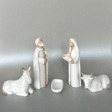 Traditionnelle décoration à Noël, les crèches sont nées d'une initiative de saint-François d'Assise en 1223. Il mit en scène la première crèche vivante représentant la nativité avec personnes et animaux. Cette pratique se répandit en Italie. A Naples, il lui vint alors l'idée de fabriquer trois petits santons avec de la pâte à sel : les "Santi Belli", Marie, Joseph et l'enfant Jésus. Il y ajouta le santon âne et le santon boeuf.